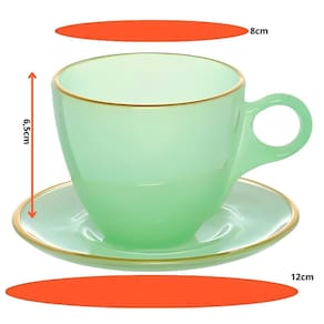 Informações Adicionais: - Validade: Indeterminada - Capacidade: 170ml - Tamanho Aproximado da Xícara: 11,5 x 8cm Ø - Tamanho Aproximado do Pires: 12 x 12cm Ø - Peso Aproximado de Cada Produto: 0,394G - Tipo de Produto: Jogo de Xícaras para Chá Matte 170ml - Cor: Verde Borda Dourada - Composição: Vidro Cristal - Pacote Contém: 4 Xícaras - Pacote Contém: 4 Pires - Garantia: 90 dias contra defeito de fabricação