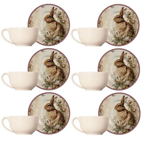 O Jogo de Xícaras de Chá Páscoa Coelho Acácia , da Alleanza combina sofisticação e delicadeza para compor sua mesa posta. Produzido em cerâmica feldspática, o conjunto de chá é composto por 12 peças, 6 xícaras de 250 ml e 6 pires, que podem ser levados ao micro-ondas e à máquina de lavar louças.