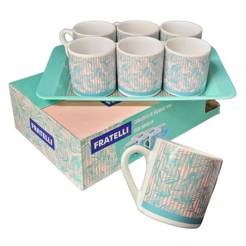 Conjunto Xícaras Coloridas e Bandeja Com esse lindo conjunto de xícaras e bandeja a hora de atender as visitas se tornará muito mais sofisticada Peças de qualidade e com lindos desenhos diferenciados. Opção ideal para recepções, restaurantes, lanchonetes, etc... Ou para receber seus convidados em casa e deixar seus momentos mais especiais e aconchegantes.
