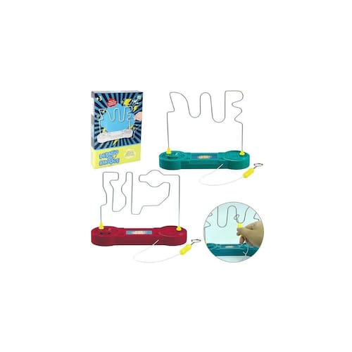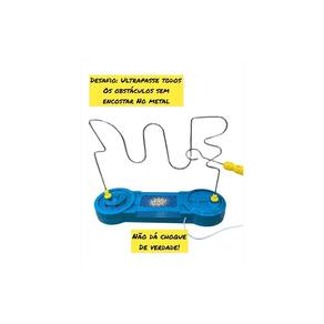 Brinquedo desafio do choque, um jogo educativo que estimula a precisão, coordenação motora e concentração. Ao tocar no metal, o brinquedo emite um aviso sonoro, indicando que o jogador deve começar novamente. O objetivo é completar todo o circuito sem acionar o sinal sonoro.