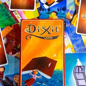 Divirta-se mais usando a expansão Dixit Quest. Use as cartas do jogo-base Dixit ou aquelas da expansão. Você também pode misturá-las. O jogo acaba quando o primeiro jogador chegar a 30 pontos no marcador de pontos.