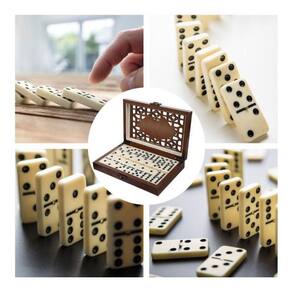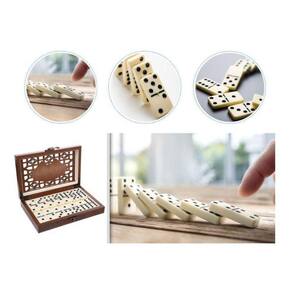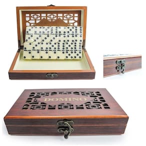 O que você recebe: -01 jogo de dominó profissional com 28 peças -01 maleta de madeira luxuosa para armazenamento
