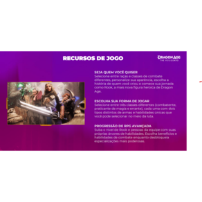 Funcionalidades do Jogo: - SALVE UM MUNDO CASTIGADO: Entre no mundo de Thedas, uma terra vibrante e repleta de florestas selvagens, labirintos traiçoeiros e cidades cintilantes. O mundo está por um fio, com divindades corruptas destruindo o continente. Nações estão em guerra e facções se dividindo. Em quem você vai confiar? Da Floresta Arlathan até os becos de Minrathous, este é um mundo perdido. Suas ações vão afetar o destino de Thedas para sempre. - UMA A GUARDA DO VÉU: Forme uma equipe de sete colegas, com suas histórias de vida ricas e contextos profundos. São personagens para você fazer amizade ou até mesmo se apaixonar. Entre eles, um assassino, um necromante e uma detetive, todos contribuindo com suas próprias expertises e habilidades únicas no combate. Você nunca estará só. Decida quem levará para a batalha e encarem juntos demônios, dragões e deuses corrompidos. - SEJA A LIDERANÇA QUE AS PESSOAS ACREDITAM: