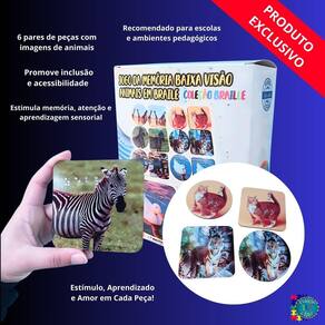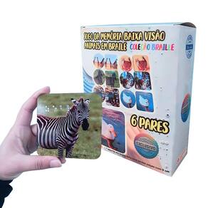 Desenvolva habilidades cognitivas e sensoriais com o Jogo Educacional Braille para Crianças com Baixa Visão 6 Pares, ideal para crianças e adultos com baixa visão. Este jogo da memória exclusivo combina imagens nítidas de animais com a escrita em Braille, facilitando a aprendizagem tátil e visual de forma lúdica e inclusiva. Estimule a memória, a concentração e o vocabulário enquanto promove a inclusão social. Um recurso essencial para educadores e famílias que buscam educação acessível e divertida.
