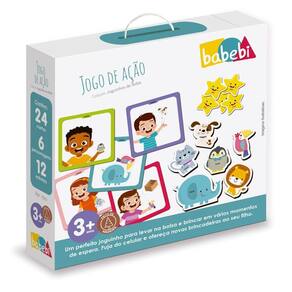 Jogos de ação e desafios, envolvem situações em que as crianças precisam tomar decisões rápidas, planejar estratégias e antecipar consequências. Essas atividades estimulam o pensamento crítico e a resolução de problemas.Este jogo de ação é formado por fichas de desafios contendo atividades como lançar, empilhar, equilibrar, mirar e girar, figuras de animais fofos para executar cada atividade, além das figuras de estrelas usadas como recompensa por cada desafio concluído.Indicado para crianças a partir de 3 anos, este produto produzido com madeira reflorestada do tipo MDF de alta qualidade utilizando energia solar limpa e sustentável ainda acompanha uma bolsinha de pano para guardar as peças e facilitar o transporte.Conteúdo da Embalagem: 24 cartas, 6 personagens, 12 estrelas, 1 bolsinha e 1 manual de instruções.Certificado de Segurança: INMETRO - Registro 009271 / 2022Homologação Inmetro: ABCP-BRI-0272-2022-01