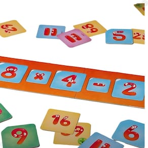 Conteúdo da Embalagem: 02 tabuleiros; 2 conjuntos de fichas de 0 a 9; 02 conjuntos de fichas das 4 operações; 55 cartas de resultado.
