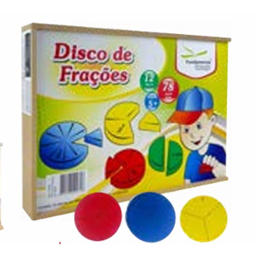 Produzido em madeira resistente e com acabamento colorido, o disco é dividido em partes proporcionais (como 1/2, 1/3, 1/4 etc.), facilitando o entendimento por meio da manipulação direta.