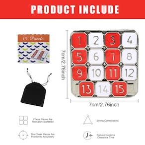 O pacote inclui: 1 x quebra-cabeça deslizante com número de metal Cor: vermelho e branco (pequena diferença de cor entre a imagem e o produto real) Material: liga de zinco Tamanho: 2,76 x 2,76 x 0,71 cm Descrição: O quebra-cabeça deslizante de números é feito de liga de zinco, total de 15 números. O design vermelho e branco torna os números mais óbvios e mais rápidos de encontrar; este quebra-cabeça deslizante numérico tem tamanho pequeno e fácil de carregar. Você pode carregar no bolso, jogando em qualquer lugar; o quebra-cabeça deslizante pode melhorar sua inteligência e reflexos, complete o quebra-cabeça no menor tempo possível. (Pequena diferença de cor entre a imagem e o produto real) - Diversão educativa envolvente: nosso quebra-cabeça deslizante de números é perfeito para estimular o pensamento crítico, resolução de problemas e habilidades de raciocínio lógico; É um bom jogo que pode melhorar sua velocidade de reação cerebral - Material durável: o quebra-cabeça 15 é feito de estrutura de liga de zinco que não danifica facilmente; garantindo que os azulejos deslizem suavemente por horas de jogo ininterrupto - Convenientemente portátil: o quebra-cabeça deslizante numérico tem 7 x 7 cm, fácil de transportar para viagens longas, acampamentos ou brincar em casa - Ideia de presente exclusiva: o quebra-cabeça deslizante de números de metal cria um presente divertido para entusiastas de quebra-cabeças de todas as idades; seja um aniversário, ano novo ou qualquer época do ano, é um presente atencioso e distinto que promove o aprendizado e a melhoria - Design vermelho e branco: nosso quebra-cabeça de números oferece um padrão clássico de 15 grades que desafia os jogadores a organizar peças numeradas na ordem correta; oferece horas de diversão, atenção plena e estimulação mental que amam quebra-cabeças de slides