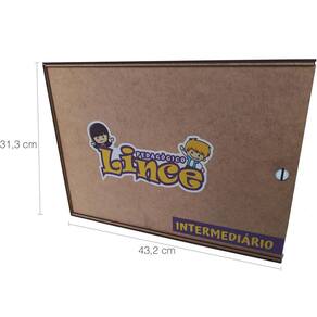 O jogo educativo lince Intermediário é uma versão desafiadora, projetada para jogadores que desejam elevar o nível de complexidade e competitividade. Além de possuir regras intermediárias, o objetivo do jogo pedagógico é o jogador que achar as palavras no tabuleiro mais rápido receberá mais pontos e vencerá no final. Feito em madeira MDF, pode ser jogado de duas a seis pessoas.