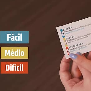 No Super Soletrando, uma carta é sorteada e o dado jogado para descobrir qual palavra você deve soletrar.