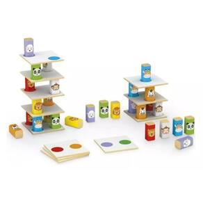 Torre Lúdica Animais com 40 peças em madeira de reflorestamento (MDF).Acompanha cartela de adesivos com temática infantil de animais para personalização.O objetivo do jogo é equilibrar as placas e peças umas sobre as outras de acordo com cada cor até que ela desabe.O participante que colocar a peça e a torre cair, perde o jogo.O jogo estimula a coordenação motora, concentração, raciocínio lógico, percepção e atenção.Divirta-se muito e não deixe a torre cair!Idade Recomendada: + 4 anosMedida embalagem: 10 x 10 x 27cm
