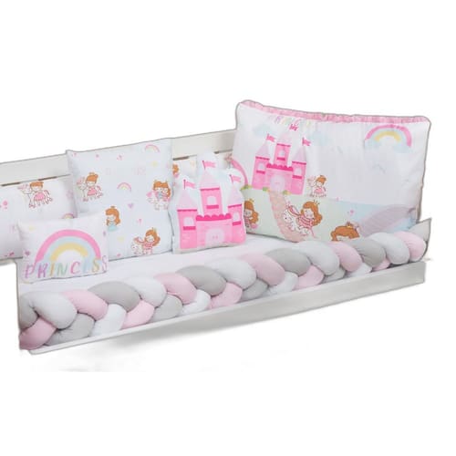 Jogo enxoval de berço realeza trançado 11p impermeável rosa Esse kit contém 11 peças para o berço, sendo: