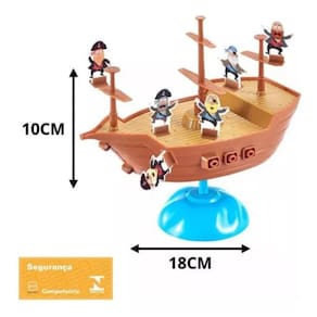 O Balanço Pirata é uma emocionante aventura para toda a família! Prepare-se para momentos de diversão e suspense enquanto você e seus entes queridos tentam manter o pirata a bordo do barco. Com um movimento errado, o pirata pode cair no mar agitado! Coloque-o no lugar errado e o barco balançará perigosamente! Projetado para 2 jogadores, este jogo é perfeito para crianças e adultos com mais de 5 anos que buscam emoções e desafios em alto mar.