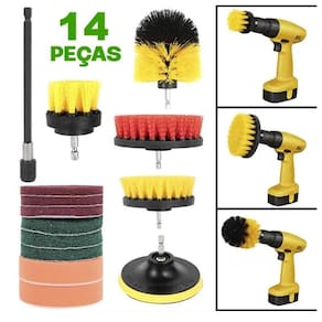 Jogo Escova Nylon 14 Pc para Furad. Haste 06066 Titanium Kit Escova Rotativa Limpeza Automotiva Giratória Broca Parafusadeira 14 peças Titanium Agora você vai limpar superfícies de banheiros, cozinha, carros e móveis em geral, sem esforço. Eles podem ser anexados à sua broca sextavada elétrica, economizando trabalho e esforço manual.Com diferentes tamanhos e formas de escovas e esfrega almofadas para limpar em torno de suas superfícies do banheiro.Estas cerdas de náilon são macias e não arranharão seus móveis.Todas as escovas têm eixos de metal, que é fácil de instalar, encaixando em sua parafusadeira ou furadeira.Apropriado para carros, banheiras, pias, cozinha, cercos de chuveiro de fibra de vidro etc. Especificação:Material do fio da escova: náilonTipo do punho da escova: parafuso hexagonal Itens Inclusos:3 peças de 4 polegadas almofadas vermelhas 3 peças de 4 polegadas almofadas verdes 2 peças de 4 polegadas esponja laranja 1 peça de 4 polegadas placa de plástico 1 haste de extensão 150mm 1 peça de 2 polegada escova amarela1 peça de 5 polegadas escova amarela 1 peça de 4 polegadas escova amarela 1 peça de 5 polegadas escova vermelha NÃO INCLUI Furadeira/Parafusadeira Kit Escova Rotativa Limpeza Geral Box Broca ParafusadeiraDescriçãoJogo com 5 Escovas Rotativas Para Limpezas em geral, uso na limpeza de pisos, azulejos, rejuntes, box, cantinhos, superfícies de banheiro, cozinha, carros, motos, móveis em geral. RPM máximo 12.000Peso 600gModelo 6065 Conteúdo da Embalagem1 Jogo de Escovas rotativas 5 peças:2 Escovas de 120x75mm1 Escova de 80x130mm1 Escova de 100x75mm1 Esvoca de 50x75mm