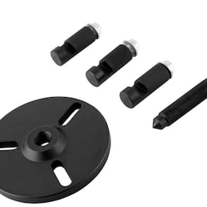 1 conjunto para extração de polias contendo 5 peças. Sendo: 3 pinos tipo gancho, 1 disco para encaixe dos pinos e 1 parafuso central.