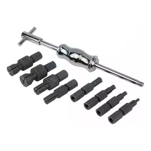 Jogo Extrator De Rolamento Interno Com Pinça Martelete 9 Pçs Jogo de Rolamento interno Tipo Pinça com martelete 9 peças: Produzido em material de alta qualidade Medidas: 8 a 10/ 10mm 5/16 13/32 10 a 12/ 12mm 13/3215/32 12 a 14/ 14mm 15/329/19 15 a 17 / 17mm 9/3211/16 17 a 20/ 20mm 11/1625/32 20 a 24/ 24mm 25/3215/1 25 a 29/29mm 11 - 1/8 30 a 32/ 32mm 1 - 3/16 1 1 - 1/4 Comprimento das braçadeiras: Cerca de 9,39.8cm. Para rolamento 8 à 32mm interno Martelo deslizante com alça Ideal para puxar trabalho que exigem uma tração interna, tais como rolamentos piloto 8 pinças, cabendo uma ampla gama de aplicações. Pode ser também para sacar rolamento de bicicleta. Utilizando: Selecione o collet de tamanho apropriado comparando-o com a aplicação. Inserir pinça, expandi-lo para caber o furo, e anexar o conjunto De martelo deslizante. de 6 meses 3 meses de Legal contra defeito de fabricação e 3 meses de concedido pela DM Ferramentas contra defeitos de fabricação Marca: Não Informado