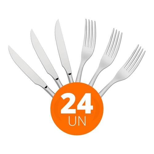 OBS: Veja na descrição os itens que acompanham o jogo.COMPONENTES DO KIT:- 12 Faca para Churrasco Laguna em Aço Inox - Tramontina 63906180- 12 Garfo de Mesa Laguna em Aço Inox - Tramontina 63906020Faca para Churrasco Laguna em Aço Inox - Tramontina 63906180Garantia: 90 dias para vícios ou defeitos de fabricação- Ideal para Restaurante, Lancheria, Paderia, Linha Doméstica, Residência, Gourmet;- Acabamento em brilho, com detalhes no cabo.- Própria para uso diário combina com qualquer ambiente.- Pode ser lavada diariamente na máquina de lavar louças.- Peso Líquido: 0,043 kg.- Peso Bruto: 0,045 kg.- Dimensões Embalagem : 0,8cm A x 2cm L x 23cm P- Dimensões Produto : 0,3cm A x 1,8cm L x 21cm P- Espessura: 3,0 mm.Garfo de Mesa Laguna em Aço Inox - Tramontina 63906020Garantia: 90 dias para vícios ou defeitos de fabricação- Ideal para Restaurante, Lancheria, Paderia, Linha Doméstica, Residência, Gourmet;- Próprio para uso diário combina com qualquer ambiente.- Pode ser lavado diariamente na máquina de lavar louças.- Peso Líquido: 0,032 kg.- Peso Bruto: 0,035 kg.- Dimensões Embalagem: 2cm A X 2,5cm L X 20cm P.- Dimensões Produto : 1,9cm A X 2,3cm L X 19,3cm P.- Espessura: 1,6 mm.