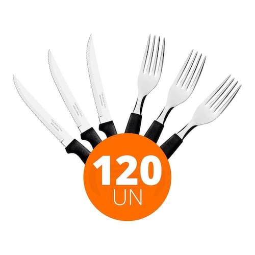 OBS: Veja na descrição os itens que acompanham o jogo.COMPONENTES DO KIT:60 Faca para Churrasco Ipanema com Lâmina em Aço Inox e Cabo de Polipropileno Preto 5 - Tramontina 2336040560 Garfo de Mesa Ipanema com Lâmina em Aço Inox e Cabo de Polipropileno Preto - Tramontina 23362400Faca para Churrasco Ipanema com Lâmina em Aço Inox e Cabo de Polipropileno Preto 5 - Tramontina 23360405Garantia: 90 dias para vícios ou defeitos de fabricação- Ideal para Restaurante, Lancheria, Padaria, Linha Doméstica, Residência, Gourmet;- A lâmina de aço inox tem maior durabilidade do fio devido ao tratamento térmico.- O cabo de polipropileno possui maior resistência e durabilidade.- Pode ir à máquina de lavar louças facilitando seu dia a dia.- Peso Líquido: 0,023 kg.- Peso Bruto: 0,025 kg.- Dimensões Embalagem : 11cm A x 20cm L x 21,3cm P.- Dimensões Produto 12cm A x 22cm L x 22cm P.Garfo de Mesa Ipanema com Lâmina em Aço Inox e Cabo de Polipropileno Preto - Tramontina 23362400Garantia: 90 dias para vícios ou defeitos de fabricação- Ideal para Restaurante, Lancheria, Padaria, Linha Doméstica, Residência, Gourmet;- O cabo de polipropileno possui maior resistência e durabilidade.- Pode ir à máquina de lavar louças facilitando seu dia a dia.- Peso Líquido: 0,025 kg.- Peso Bruto: 0,027 kg.- Dimensões Embalagem: 16cm A x 24cm L x 19cm P.- Dimensões Produto: 17cm A x 7,5cm L x 19cm P .