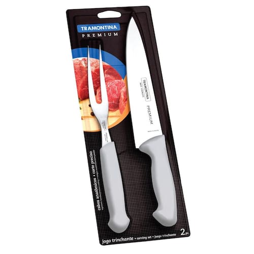Conjunto com 1 faca e 1 garfo trinchante em aço inox Linha Premium Tramontina.