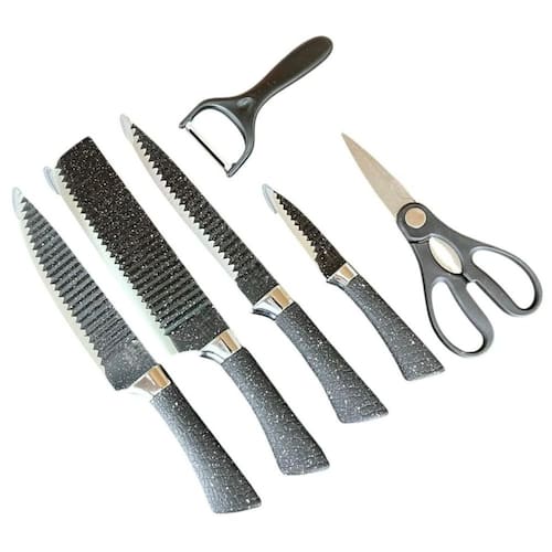 Jogo Facas 6 Peças Aço Inox Chef Cutelo Tesoura Descascador Cozinha