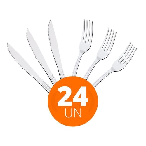OBS: Veja na descrição os itens que acompanham o jogo.COMPONENTES DO KIT:- 12 Faca para Churrasco 4 Búzios em Aço Inox - Tramontina 23750404- 12 Garfo de Mesa em Aço Inox Búzios - Tramontina 23762400Faca para Churrasco 4 Búzios em Aço Inox - Tramontina 23750404Garantia: 90 dias para vícios ou defeitos de fabricação- Ideal para Restaurante, Lancheria, Padaria, Linha Doméstica, Residência, Gourmet;- Talher produzido em aço inox que mantém a beleza, a higiene e a durabilidade.- Lâmina da faca tem maior durabilidade do fio devido ao tratamento térmico.- Pode ir à máquina de lavar louças facilitando seu dia a dia.- Peso Líquido: 0,032 kg.- Peso Bruto: 0,035 kg.- Dimensões Produto : 3cm A x 19cmL x 20cm P.Garfo de Mesa em Aço Inox Búzios - Tramontina 23762400Garantia: 90 dias para vícios ou defeitos de fabricação- Ideal para Restaurante, Lancheria, Padaria, Linha Doméstica, Residência, Gourmet;- Certificação NSF - Os produtos da Linha Búzios são certificados pela National Sanitation Foundation NSF , organização reconhecida como a autoridade internacional em segurança alimentar e práticas de higiene.- Pode ir à máquina de lavar louças facilitando seu dia a dia.- Peso Líquido: 0,020 kg.- Peso Bruto: 0,020 kg.- Dimensões Produto: 1,8cm A x 2,2cm L x 18,77cm P.