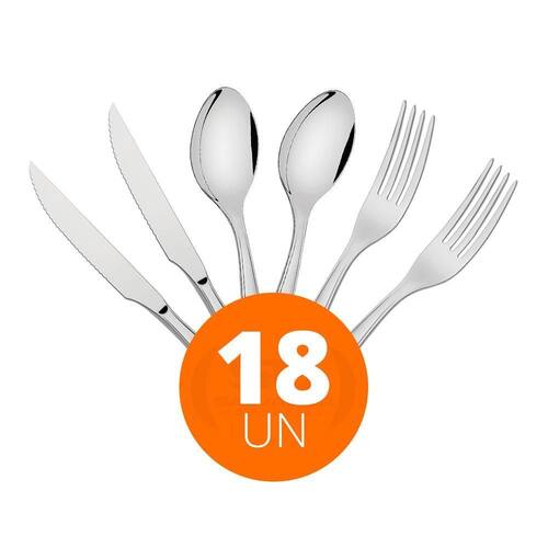 OBS: Veja na descrição os itens que acompanham o jogo. COMPONENTES DO KIT: - 6 Faca para Churrasco Laguna em Aço Inox - Tramontina 63906180 - 6 Garfo de Mesa Laguna em Aço Inox - Tramontina 63906020 - 6 Colher de Sopa Laguna em Aço Inox - Tramontina 63906010 : 90 dias para vícios ou defeitos de fabricação Faca para Churrasco Laguna em Aço Inox - Tramontina 63906180 - Faca totalmente temperada; - Totalmente feita de aço inox; - Acabamento em brilho, com detalhes no cabo. - Pode ser lavada diariamente na máquina de lavar louças.- Peso Líquido: 0,043 kg. - Peso Bruto: 0,045 kg. - Dimensões Embalagem : 0,8cm A x 2cm L x 23cm P - Dimensões Produto : 0,3cm A x 1,8cm L x 21cm P - Espessura: 3,0 mm. Garfo de Mesa Laguna em Aço Inox - Tramontina 63906020 - Garfo com dentes polidos na parte interna; - Totalmente feito de aço inox; - Acabamento em brilho, com detalhes no cabo. - Pode ser lavado diariamente na máquina de lavar louças. - Peso Líquido: 0,032 kg. - Peso Bruto: 0,035 kg. - Dimensões Embalagem: 2cm A X 2,5cm L X 20cm P. - Dimensões Produto : 1,9cm A X 2,3cm L X 19,3cm P. - Espessura: 1,6 mm. Colher de Sopa Laguna em Aço Inox - Tramontina 63906010 - Colher com bojo em formato simétrico e bordas cuidadosamente arredondadas; - Totalmente feita de aço inox; - Acabamento em brilho, com detalhes no cabo. - Pode ser lavada diariamente na máquina de lavar louças. - Peso Líquido: 0,040 kg. - Peso Bruto: 0,041 kg. - Espessura inox: 1,8 mm. - Medida Extena : 19cm x 4,3cm concha Marca: Não Informado