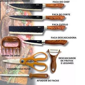 Jogo facas inoxidável cozinha chef com amolador completo Descrição do anúncio Transforme seu churrasco em uma experiência gourmet com este kit de facas ideal para os verdadeiros amantes da carne e da boa culinária, o conjunto conta com lâminas afiadas em aço inoxidável, design moderno e acabamento elegante. Seja para uso doméstico ou , este kit é perfeito para churrasqueiros exigentes que buscam precisão e estilo na hora do corte. Além de garantir cortes perfeitos, o kit acompanha acessórios essenciais como cutelo, afiador e amolador, proporcionando maior praticidade e durabilidade para suas facas. Um excelente presente para o dia dos pais ou qualquer ocasião especial Conteúdo da embalagem 1 faca do chef 1 faca para fatiar 1 faca de desossar 1 faca para legumes 1 cutelo 1 afiador ou amolador manual 1 garra de segurar carne 1 maleta elegante para armazenamento Características Lâminas afiadas e resistentes em aço inoxidável Design ergonômico com cabo confortável Visual sofisticado na cor preta com marrom Ideal para cortar carnes, legumes, verduras e muito mais Uso doméstico ou Fácil de limpar e com alta durabilidade Maleta prática para transporte e organização Presente ideal para datas comemorativas como dia dos pais Especificações Material das lâminas: aço inoxidável Material do cabo: polipropileno resistente Cor: preta com marrom Quantidade de peças: 8 Tipo de produto: kit de facas para churrasco Uso: doméstico e Acompanha maleta: sim Tipo de corte: precisão e alta performance Entrega: rápida Marca: Não Informado Ean: 7905341721252