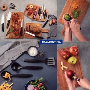 Sua cozinha ganhará maior funcionalidade e versatilidade com o jogo de facas Tramontina Plenus com lâminas em aço inox e cabos de polipropileno preto 10 peças. Com peças essencias para o preparo das suas refeições do dia a dia, como facas, cutelo, descascador e tesoura, ele vai deixar o preparo de suas receitas ainda mais fácil. As lâminas das peças são produzidas em aço inox com tratamento térmico e cabos de polipropileno, garantem alto poder de corte, resistência e maior durabilidade. Um jogo que ainda pode ser levado à máquina de louças e que vai facilitar suas tarefas, seja na hora de cozinhar ou limpar