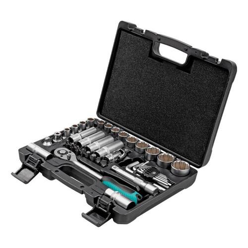 Tenha em suas mãos um conjunto completo e robusto para todas as suas necessidades de aperto e desaperto! O Jogo de Soquetes Estriados Stels, modelo 135799, oferece 41 peças com encaixe de 1/2 polegada, fabricadas em aço cromo-vanádio com acabamento cromado para garantir resistência, durabilidade e um desempenho superior. Ideal para profissionais e entusiastas, este kit é perfeito para manutenção, reparos automotivos, montagem de móveis e diversas outras aplicações. A catraca reversível com 72 dentes proporciona maior precisão e conforto, enquanto a maleta plástica resistente facilita o transporte e a organização das ferramentas. Invista em qualidade e tenha sempre à mão as ferramentas certas para cada trabalho, economizando tempo e esforço. Este jogo de ferramentas Stels é a escolha inteligente para quem busca praticidade, eficiência e durabilidade.