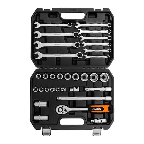 Está procurando um conjunto de ferramentas completo e resistente para suas tarefas de reparo? O Jogo de Ferramentas Sparta 135277, com 32 peças de 1/2', é a solução ideal. Fabricado na China, este jogo combina praticidade, durabilidade e versatilidade, tornando-se um aliado indispensável tanto para profissionais quanto para entusiastas do 'faça você mesmo'. As ferramentas são produzidas em aço CrV de alta resistência, garantindo longa vida útil e desempenho confiável em diversas aplicações. Com extensores e junta universal inclusos, você terá acesso fácil a locais de difícil alcance, otimizando seus reparos automotivos, trabalhos em casa e muito mais. O revestimento protetor fosco previne a corrosão, mantendo suas ferramentas em perfeito estado por mais tempo. A chave de catraca com interruptor de direção de bandeira permite mudanças rápidas e fáceis, facilitando o trabalho com apenas uma mão. A maleta plástica resistente a impactos com fechos metálicos garante o armazenamento seguro e o transporte conveniente do seu jogo de ferramentas Sparta.