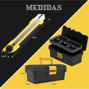 ESPECIFICAÇÕES TÉCNICAS: Caixa com alça para transporte e travas de segurança Estilete com trava giratória para cortes seguros Ferramentas ergonômicas para maior conforto no uso Indicado para casa, carro, escritório e serviços gerais