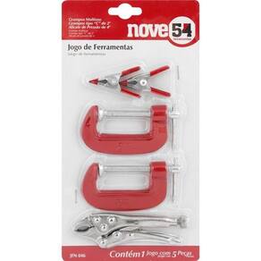 1 Jogo de ferramentas com 5 peças, sendo: 2 grampos tipo C de 2, 2 grampos multiuso e 1 alicate de pressão de 4