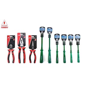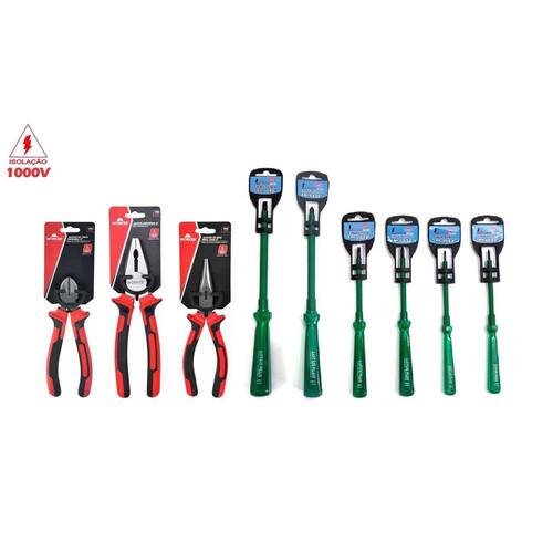 Jogo De Ferramentas Eletricista Profissional, Indicado para Eletricistas, Técnicos e Engenheiros, contendo: Alicate Universal, Alicate de Bico, Alicate de Corte e 01 Conjunto de 06 Chaves de Fenda e Phillips Haste Isolada Ponta Imantada.