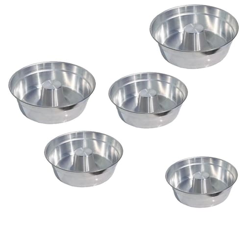 Jogo de forma de bolo redonda para padaria com cone de alumínio central, com orla (dobra na boca), composto por 5 (cinco) peças. Consulte condições de compras para outros tamanhos, diâmetro, litros e para compras no atacado.
