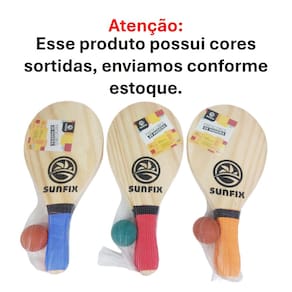 Jogo Frescobol Tênis de Praia Pinus 2 Raquetes Madeira 1 Bola Sunfix