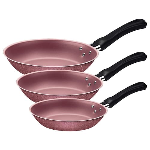 Descubra o prazer de cozinhar e criar receitas incríveis, com o jogo de frigideiras Tramontina Caribe em alumínio com revestimento interno e externo antiaderente Starflon Max preto 03 peças. Produzidas em alumínio com revestimento antiaderente Starflon Max, suas frigideiras cozinham os alimentos de maneira rápida e uniforme, sem que eles grudem em sua superficie. Seus cabos são em baquelite antitérmico e proporcionam um manuseio muito confortável e seguro, pois reduzem a propagaçaõ de calor. Além de todos estes atributos incríveis, as frigideiras são muito fáceis de limpar e podem ser lavadas na máquina de lavar louças, otimizando seu dia a dia na cozinha. Sem dúvida, a escolha perfeita para levar alta qualidade e beleza para sua cozinha, garantindo um preparo das suas refeições muito mais prático Corpo de alumínio com espessura que proporciona cozimento rápido e uniforme. Revestimento interno e externo de antiaderente Starflon Max que não gruda, é fácil de limpar, mais durável e não é prejudicial à saúde, pois é livre de PFOA. Cabo de baquelite antitérmico que oferece segurança durante o manuseio. Pode ir à máquina de lavar louças facilitando seu dia a dia. Pode ser utilizada nos fogões: gás, elétrico e vitrocerâmico - resistência elétrica. Jogo de Figideira Alumínio 3 Peças Caribe Tramontina Starfon MAX Conteúdo: 1 Frigideira 16cm - 0,4L 1 Frigideira 20cm - 0,8L 1 Frigideria 24cm - 1,4L