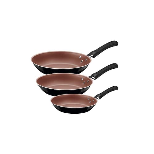 Jogo frigideiras 3pcs caribe preto tramontina Cor: preto Jogo de frigideiras tramontina caribe com revestimento interno em antiaderente starflon max e externo de poliéster preto 03 peças