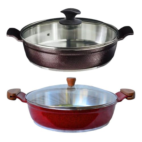 01 Frigideira Antiaderente Usinado Javali Vermelho Alça de Madeira 30cm.