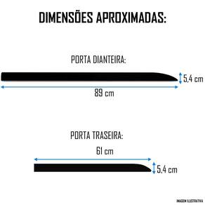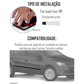 Descrição: O friso lateral é produzido em polipropileno pp de alta qualidade na cor preto, e segue os padrões mais exigentes de qualidade. Sua pintura é resistente e não desbota ou sai com o tempo. O friso lateral deixará seu carro muito mais bonito e atraente. Protege as portas contra pequenos acidentes e arranhões. Kit composto por 4 peças. Friso com ótima qualidade de acabamento e pintura. Produto universal para carros 4 portas. Medidas aproximadas dos frisos: - largura: 5 cm - porta dianteira: 89 cm - porta traseira: 61 cm 1 ano de Além de deixar seu carro com aspecto mais esportivo e moderno, o friso protege a lateral do seu veículo contra pequenos arranhões e amassos Disponível somente na cor: - preto. Possíveis carros compatíveis: - gol - voyage - up - polo - virtus - jetta - t-cross - taos - passat - polo - corolla - yaris - etios - onix - cruze - cobalt - corsa - celta - astra - agile - meriva - vectra - zafira - hb20 - creta - tucson - march - kicks - sentra - palio - punto - argo - uno - cronos - captur - sandero - logan - duster - renegade - compass - focus - ecosport - fiesta - novo ka Ean: 7896880714891