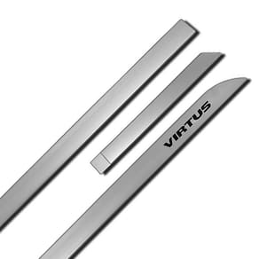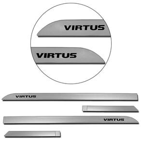 Jogo Friso Lateral Volkswagen Virtus 18 19 20 21 22 Prata Sirius com Grafia silkada Marca Top Mix Com a função de proteger contra possíveis riscos e amassados e aumentar o estilo do carro, esse Jogo de Friso Lateral é o acessório ideal para seu Virtus, pois foi desenvolvido com medidas exatas e conta com grafia personalizada com o nome do veículo. Na cor Prata Sirius ele é o diferencial dentre outros frisos, sem contar que sua fixação é feita por meio de fita dupla-face, que torna mais fácil ainda. Produzido em Polipropileno de alta qualidade, sua durabilidade e resistência são maiores. Não perca essa, corra e garanta já o seu Cor Disponível: Prata Sirius Compatível com: Volkswagen Virtus 2018 a 2022 Especificação Técnica: Fabricado em Polipropileno de Alta Resistência Disponível na Cor Prata Sirius Fixação com Fita Dupla-Face Acompanha o Produto Melhora a Estética e Protege a Lateral do Veículo Grafia Personalizada com o Nome do Veículo Acabamento Impecável Encaixe Perfeito Dica: Para melhor fixação do produto, aplique sobre a superfície limpa, seca e não molhe por 24 horas Conteúdo da Embalagem: 02 Frisos Dianteiros 02 Frisos Traseiros Importante: Garantia de 3 Meses. Valor do Jogo. Imagens Meramente Ilustrativas. Recomendamos que a instalação seja feita por profissional especializado e não nos responsabilizamos pelo mau uso do produto.