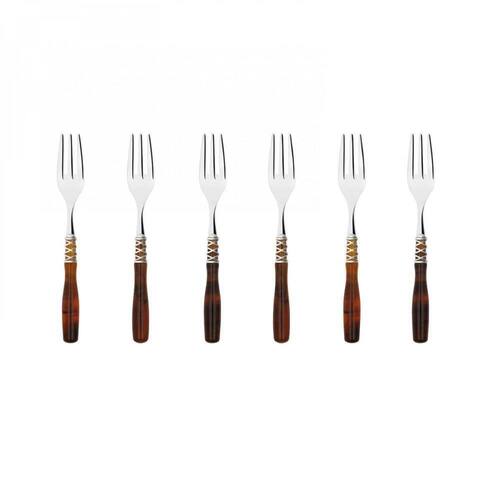 O jogo de 6 garfos para sobremesa da Linha Arianna da Bugatti é composto por um anel cromado trançado inspirado no famoso fio de Ariadne que lhe dá o nome, e um elegante cabo de madrepérola em acrílico colorido.
