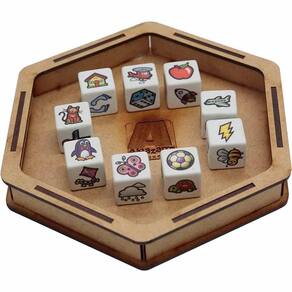 Contém : 1 Bandeja de Dados. 1 Livreto de Regras e Anotações 9 Dados de 21 mm personalizados.