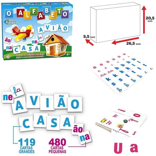 Informações adicionais: Ean: 7896647010341 Validade: indeterminada Indicação: maiores de 4 anos Tamanho aproximado da caixa: c:22,7xp:4,5xa:21,2cm Peso aproximado: 434g Tipo de produto: jogo identificar letras/formar silabas e palavras o alfabeto didatico Cor: colorido Composição: papelao Homologação Inmetro: CE-BRI/ICEPEX-N 01264-25-1 Ean: 7068934899896