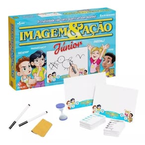 O clássico jogo de desenho e adivinhação agora em uma versão exclusiva para a criançada! Cada jogador será o desenhista e, na sua vez, tentará passar à sua equipe uma palavra ou expressão. É proibido falar, escrever letras e números e fazer gestos ou mímicas. Os únicos instrumentos que você terá à disposição são um lápis e um papel, para desenhar, esboçar e rabiscar o que quiser. Enquanto isso, os colegas de equipe têm o tempo da ampulheta para adivinhar. E você não precisa ser desenhista, o que vale é a sua criatividade.O jogo foi desenvolvido especialmente para a idade de 5 a 10 anos, para estimular a criatividade na associação de desenhos e palavras. Quem tem de 5 a 7 anos, joga com o baralho azul, que possui palavras mais simples. Já quem tem de 8 a 10 anos, joga com o baralho vermelho, um pouco mais difícil e adequado à idade.São 480 palavras para desenhar. Cada carta tem quatro palavras. Na sequência, uma vai ficando mais difícil que a outra. A equipe só pode passar para a segunda palavra se acertar o desenho da primeira, e assim por diante. É preciso correr, porque o tempo é curto! Ganha a equipe que matar primeiro as quatro palavras desenhadas. Para isso, o que conta é muita criatividade e imaginação.CARACTERÍSTICAS TÉCNICAS:Conteúdo da Embalagem: 01 baralho com 60 cartas azuis, 01 baralho com 60 cartas vermelhas, 02 quadros plastificados para desenhar, 03 gizes de cera, 01 ampulheta, 01 apagador e 1 manual de instruções.Dimensões Aproximadas da Embalagem: 26cm x 8cm x 36cm (Altura x Largura x Comprimento/Profundidade)Material/Composição: Papel cartão e plástico.Idade Mínima Recomendada: A partir de 5 anos.Participantes: A partir de 4 pessoas.Marca: Grow.Referência: 01710.