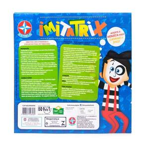 Jogo Imitatrix - Brinquedos Estrela Um jogo de mímica com tabuleiro. Divirta-se fazendo mímicas para conseguir chegar ao final do tabuleiro primeiro! Idade Recomendada: A partir de 5 anos | Material: Cartonado e plástico | Quantidade de Peças: 1 cinta, 120 cartas, 1 tabuleiro, 4 peões e 1 dado | Código Inmetro: CE-BRI/IQB-AJ001 NM300/2002 | Formato: Físico