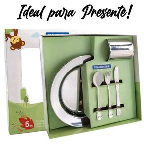 Jogo infantil alimentação 5 peças aço inox forte tramontina descrição: