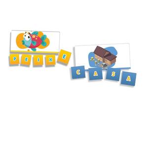 Este brinquedo auxilia no aprendizado das letras e na formação de palavras. Boa diversão! Contém:8 cartelas44 peças Idade: acima de 4 anosMaterial: Papel cartão Selo Inmetro: CE-BRI/ICEPEX-N 01264-25