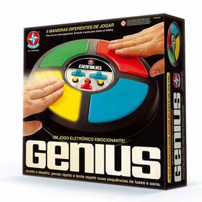 Jogo Infantil - Eletrônico - Genius - Estrela Jogo Infantil - Eletrônico - Genius - Estrela: Tiii, Titaa, Titatãã e Tooom. O Jogo Genius - clássico dos anos 80 - está de volta! As crianças vão adorar esse incrível desafio. Para se sair bem nessa divertida competição tem de ter habilidade e boa memória. É preciso também pensar rápido e tentar repetir as sequências de luzes e sons sem errar. Seu filho pode se reunir com os amiguinhos e começar a brincadeira. O Genius traz diversas combinações para testar e desafiar o poder de concentração dos participantes. Com esse brinquedo eletrônico, os pequenos terão à disposição três jogos e quatro níveis de dificuldade para deixar o jogo ainda mais emocionante.- Jogo Genius Estrela, como jogar?Jogo 1 - Genius Comanda- Um jogadorVocê está desafiado a repetir as sequências de luzes e sons. Mas atenção, elas vão ficando cada vez mais longas e mais rápidas.- Dois ou mais jogadoresVocês podem ser os adversários do Genius, ou competir entre si, repetindo as sequências.Jogo 2 - O Jogador Inventa- Um jogadorTeste sua memória e veja do que ela é capaz. Quanto tempo você consegue repetir sequências que você mesmo inventa.- Dois ou mais jogadoresRepita a sequência feita pelo jogador que o antecedeu. Cada participante aumentará um sinal. Portanto muita atenção.Jogo 3 - Escolha A Sua Cor- 2,3 ou 4 jogadoresRepitam as sequências do Genius, mas cada jogador é responsável somente por uma cor. Não durma no ponto ou você perdeINFORMAÇÕES:- Produto: Jogo Genius- Marca: Estrela- Tipo de jogo: Jogo de Memorizar- Tempo médio de jogo: 15 minutos- Objetivo do Jogo: conseguir a maior pontuação, acertando as sequências dadas pelo Genius- Participantes: Para um ou mais jogadores- Conteúdo: 1 genius e 1 manual de instruções- Recomendação: para crianças a partir de 06 anos de idadeESPECIFICAÇÕES:- Referência: 1001608900002- Código de Barras: 7896027543353- Embalagem (C x A x L): 31 x 31 x 10 cm- Embalagem (Peso): 0.830 kg- Composição / Material: Cartonado e plástico- Alimentação: 4 pilhas AA (não inclusas)- Registro: 001811/2020 - 000915/2019- Certificado: Órgãos Autorizados - OCPS (Organismos de Certificação de Produtos) BENEFÍCIOS DE BRINCAR:- Eleva a autoestima- Estimula o raciocínio- Exercita o imaginário- Desenvolve a criatividade- Desenvolve percepção visual - Desperta a atenção e curiosidade- Desenvolvimento neuropsicológico- Estimula habilidades motoras básicas- Incentiva a comunicação e linguagem- Estimula o desenvolvimento psicomotor- Desenvolve aspectos emocionais e afetivos- Melhora a qualidade do sono e o sistema imunológicoAVISO: - As imagens são meramente ilustrativas- Os tamanhos e medidas são aproximados- As cores e estampas dos produtos podem ter variações- As informações são de responsabilidade do fabricante ou fornecedor