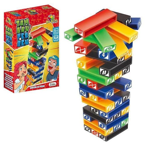 O jogo Tombou Perdeu é perfeito para interação entre crianças, jovens e adultos Para dar início ao jogo, uma torre com os blocos deverá ser montada com 15 andares O primeiro jogar escolhe qualquer peça que não esteja no topo e tenta retirá-la, sem derrubar a torre Depois ele deve colocar a peça no topo da torre, seguindo a regra do sentido A rodada passa pro proximo jogador