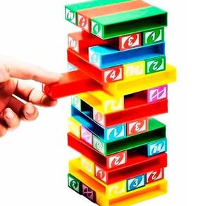 O jogo Tombou Perdeu é perfeito para interação entre crianças, jovens e adultos Para dar início ao jogo, uma torre com os blocos deverá ser montada com 15 andares.